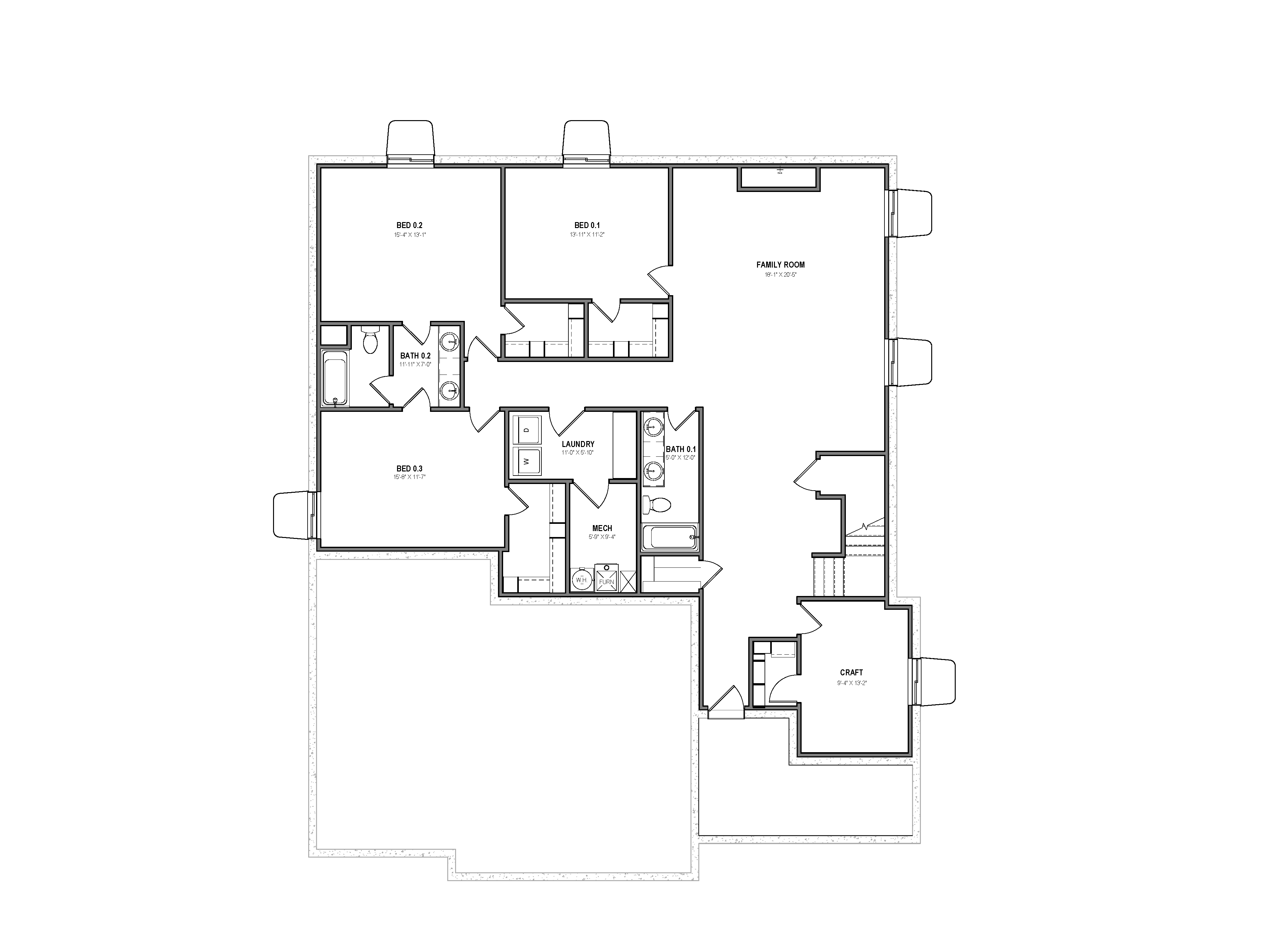 The basement floor on this model opens up with a large media room and continues on to four bedrooms and two bathrooms, one of which is a strategically placed jack-and-jill. The main laundry room, as well as plenty of storage, can also be found on this level.